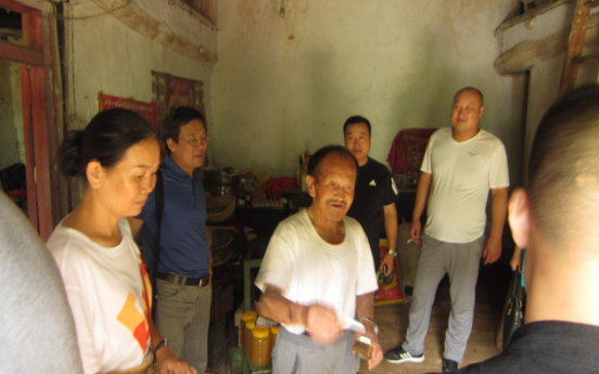 愛心團(tuán)隊(duì)查看困難群眾劉本均滯銷的大量土蜂蜜